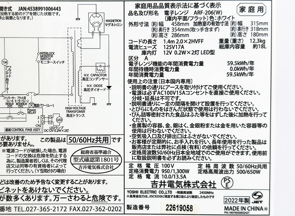 倉敷市上富井のお客様より、アビテラックス(Abitelax)電子レンジ ARF-206(W) をお持ち込みいただき、買取いたしました。
