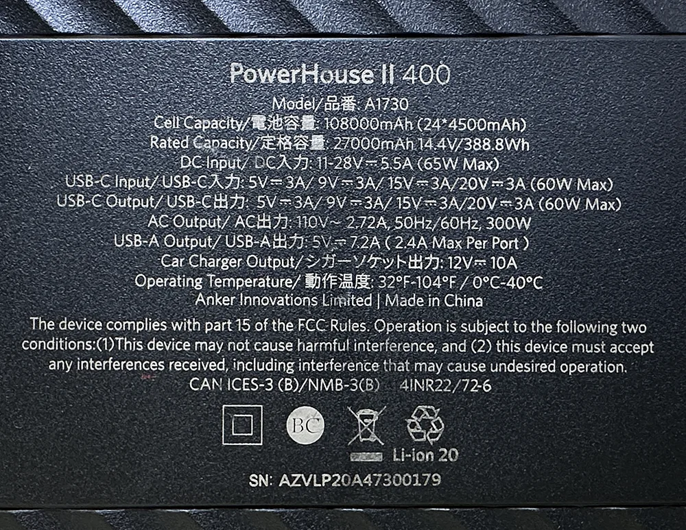 - モデル:PowerHouse II 400(A1730)