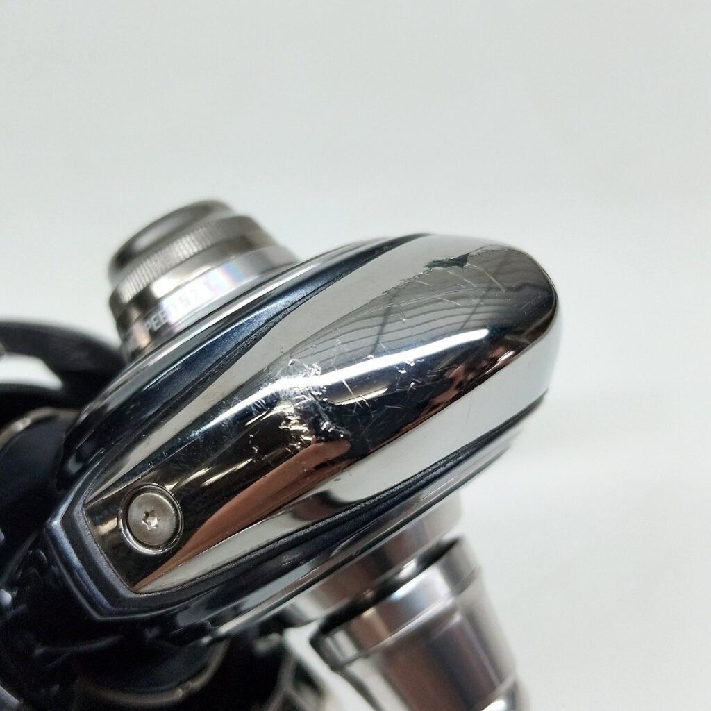 ライン放出に関わる箇所なので、状態を確認したうえで評価しました(実釣用途としての需要も加味します)。 - ボディ尻部分に置きキズ/塗装ハガレあり