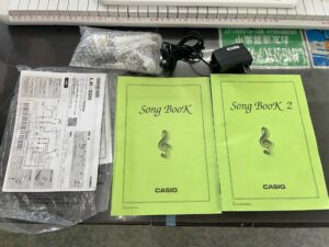 マイクや楽譜などの付属品も揃っています。