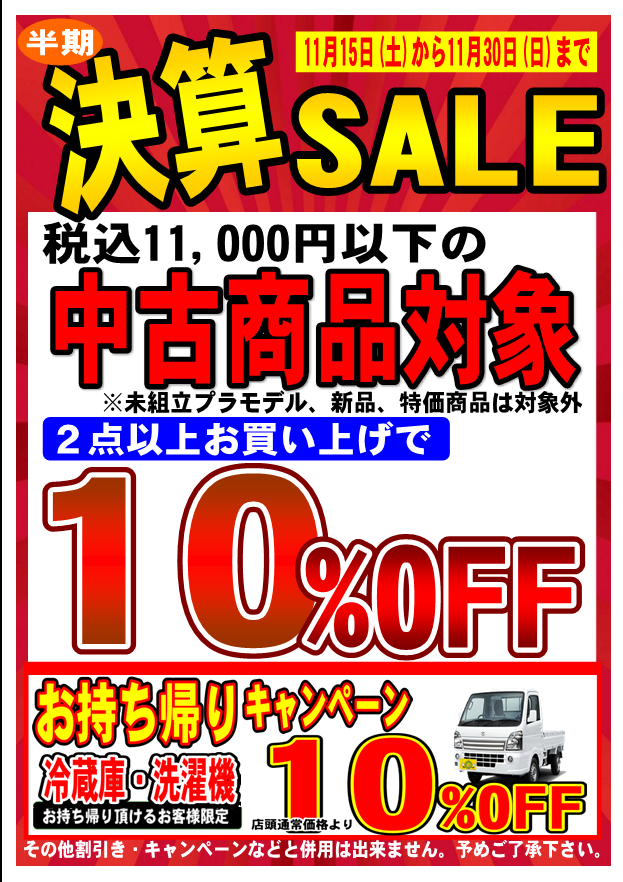 - 【尾道店限定】11/15(土)~11/30(日) 半期決算SALE